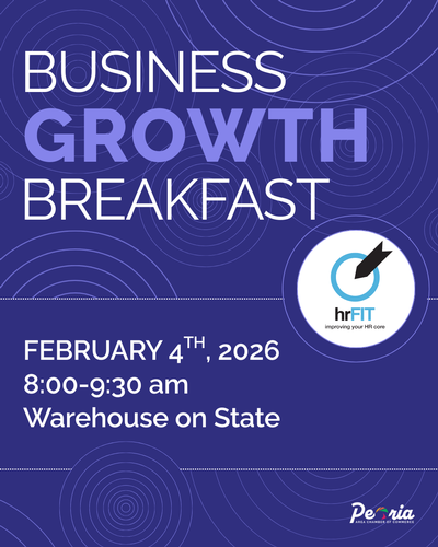 In 2026, the Peoria Area Chamber of Commerce is launching a new members-only quarterly series, Business Growth Breakfast, powered by HR Fit. This series brings Chamber members together for breakfast, connection, and practical insight designed to support employee and organizational growth.